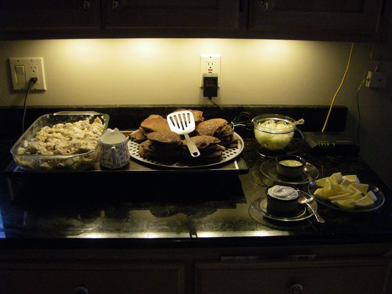 That's the Kaleberg Labs recipe, and that's some of the fish on the right. We used a real fast shutter to take that snap. You know how long food lasts here Chez Kaleberg.