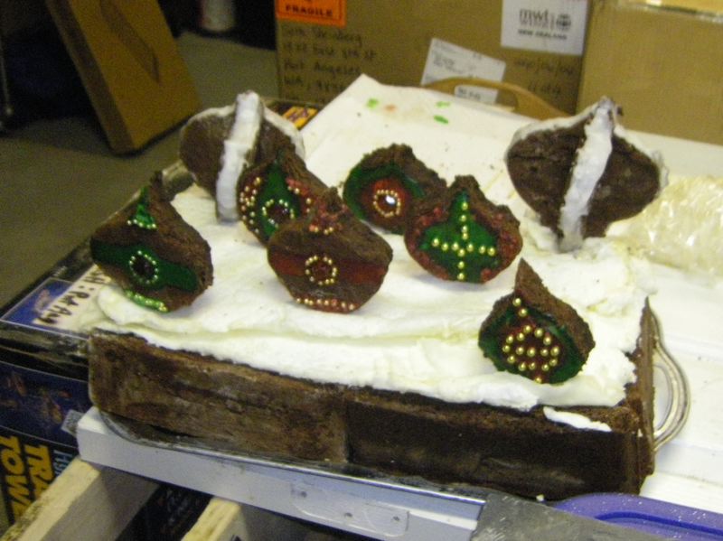 The domes of Moscow were particularly lurid this year, with lots of dragee and extra dark red and green food dyes. Those supermarket food dyes are really too pastel for a serious holiday like Russian Easter. In any event, Moscow was once again saved from the monster Napoleon thanks to a liberal dousing of French brandy. As the flames rose, and the Frenchies retreated, we celebrated the irony with, of all things, champagne.