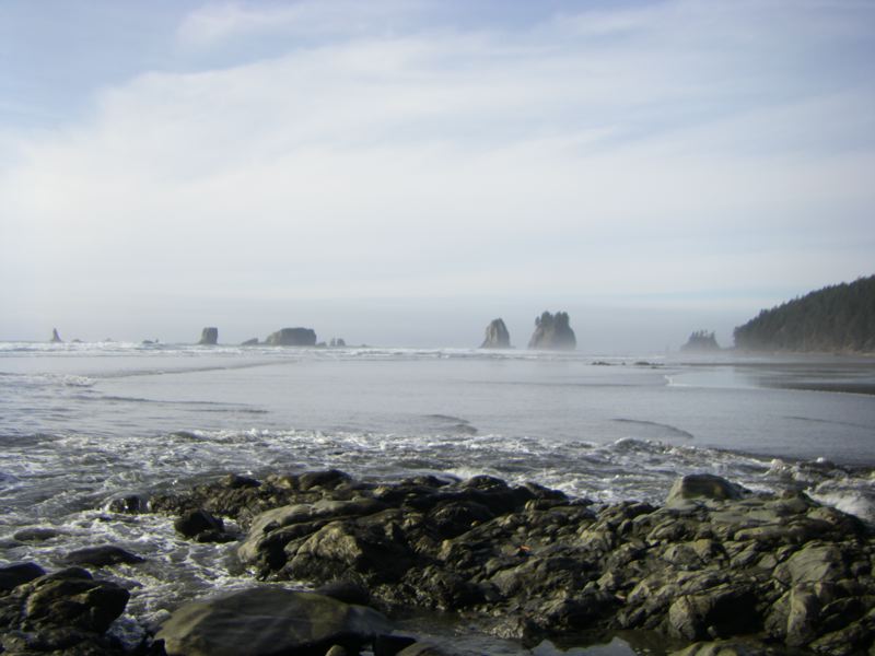 Second Beach is a winter beach, but there is still a lot to explore at low tide. The beach is broad and sandy, and there are even a few starfish in the tidepools. There is some rough going at the south end of the beach since so much sand has washed out for the season. Check our tide tables and look for a good mid-day low tide at Second Beach or Rialto Beach. (You can also see upcoming good tides in the left column of this web page).