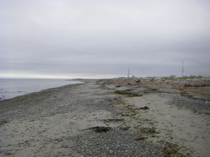 We didn't time the tides perfectly, but we made it out to the New Dungeness Light and couldn't help noticing the changes. The beach is much sandier than it has been, and that made for easier going. The sandbar out past the turn where the lighthouse becomes visible seems to have disappeared, but the big news is that it is once again possible to approach the lighthouse from the beach. For a while the beach had been so eroded that you had to cut inland and approach by the route they use for the beach buggies. It is nice to have the old approach back.