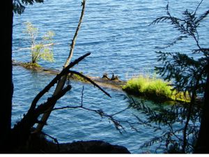 A floating nurse log on Lake Crescent