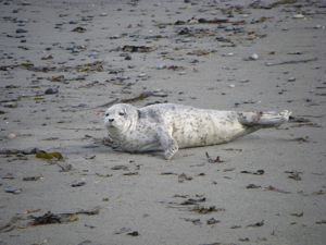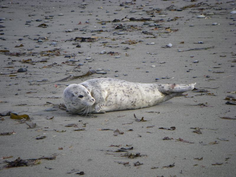 Dungeness Spit provides cheap day care for seal moms. It sounds like they are awful mothers. They drop their pups off on the spit and spend the day fishing. But, they come back in the evening to feed and take care of their little ones. We saw this little seal on the spit near the one mile mark, and he, or she, took all of us tourists in stride.