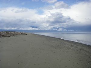 We should also note that the beach on Dungeness Spit is nice and sandy and good for hiking, even when the low tide is relatively high (around plus three feet). Needless to say, the views of the strait, the sky and the mountains are as spectacular as ever.
