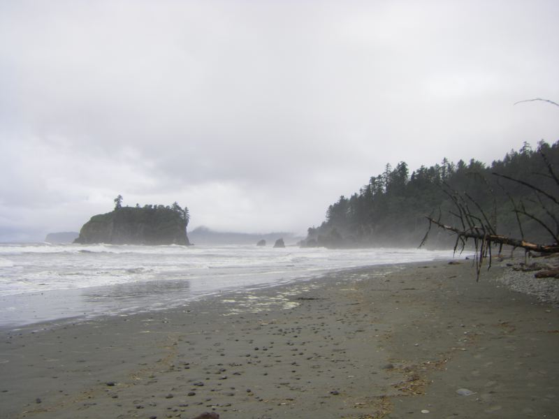 Ruby Beach is perhaps a two hour drive from Port Angeles. We haven't been there in fifteen years. For some reason, Second Beach and Rialto Beach, which are closer, keep getting in the way. A few days ago we set out to remedy this and visited Ruby Beach again. It was a gray day, as so many are around here, but the beach was as beautiful as ever. It gets its name from the garnet in the sand there.