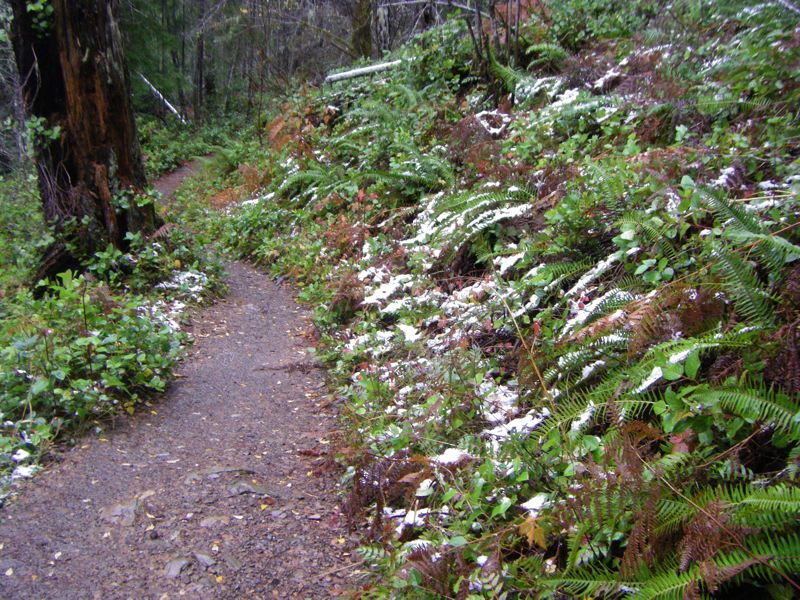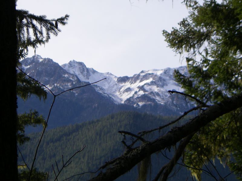 The Elwha trails out of Whiskey Bend are still wide open, and they offer great views of the snowy mountains across the river. We had to push on to the overlook just for a peek.