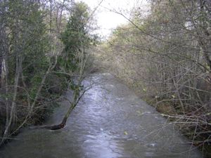 Morse Creek - That L shaped branch on the left is covered with water. usually the creek flows well under that branch.
