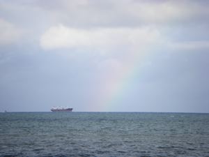 An expedition ship searching for the pot of gold at the end of the rainbow