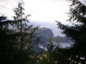 Storm King on the south shore of Lake Crescent got its first dusting of snow recently. The sky wasn't sure if it wanted to be blue or gray. That's typical in the autumn. The snow line on the mountain adds to the drama.