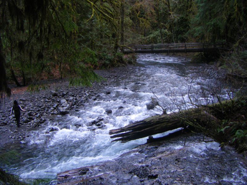 This is a good time of year to check out Marymere Falls at Barnes Creek. The valley is cold, and the river is wild. The falls themselves are in full flow.
