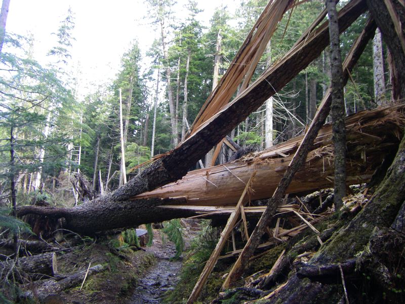 There's another tree down on the Lake Angeles Trail. This one was quite a piece of lumber. Mind you, this isn't really news. Trees fall in the forest all the time, though quite a few choose late November or early December. There were a few trees down on the Spruce Railroad Trail at Lake Crescent as well, but both trails are still passable.