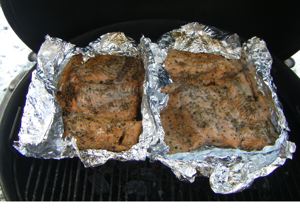 For the last few weeks Tuna Dan has had steelhead at the Port Angeles Farmers' Market, so that means we've been having smoked steelhead. We use brown sugar, black pepper, kosher salt and coriander seeds for our rub. We don't smoke it long, but that doesn't matter. We usually eat it pretty quickly.