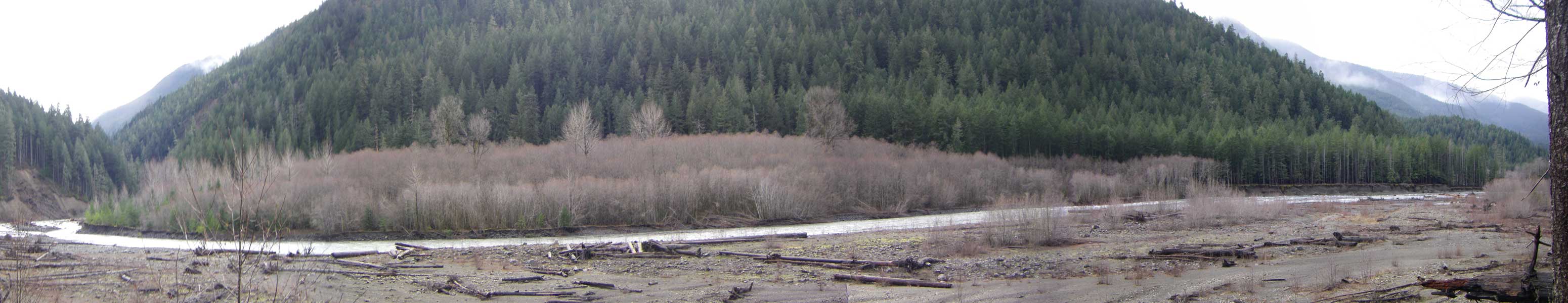 We hiked out of Whiskey Bend down to the Elwha River, or rather, to just above the Elwha River, but low enough to get a good view of the flood plain. It was a wonderful green trail, and the Elwha River was wild and full. The winding road to the trailhead does get closed now and then, but it is open for most of the winter, and the Elwha River walks are beautiful this time of year.