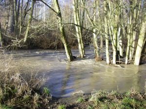 At Morse Creek, we use that almost horizontal branch on the left as our benchmark. The waters are usually a foot or so below its bottom, but with the recent rise it is well over the top.