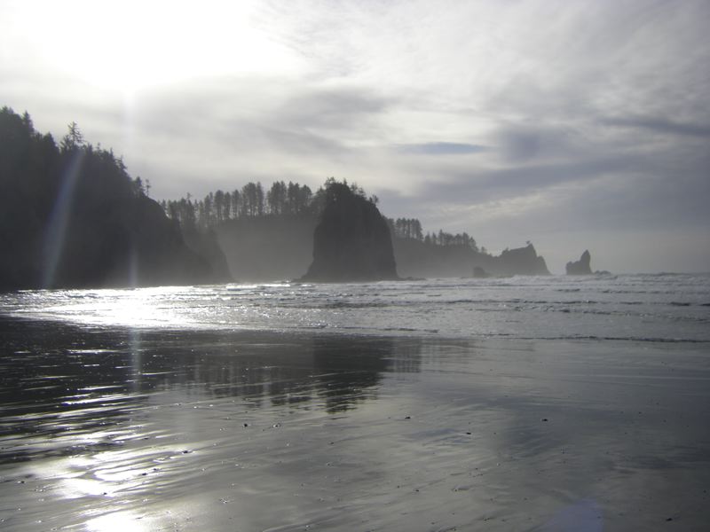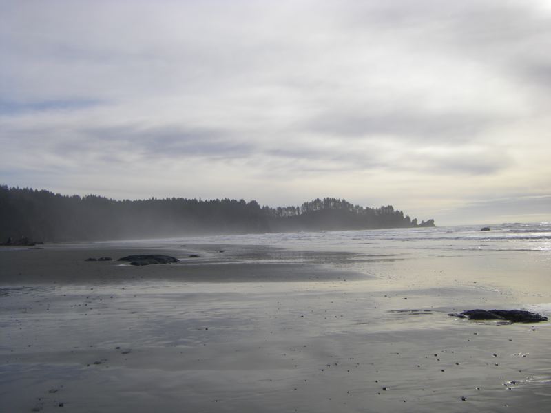 There were some good tides at Second Beach, so we went for a walk. The driftwood wall has been rebuilding, but we still managed to clamber out to the beach. This time there was brilliant light and a faint haze.