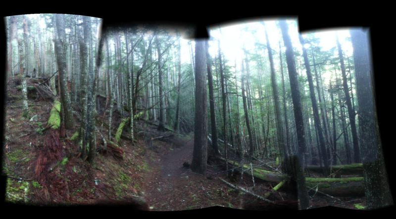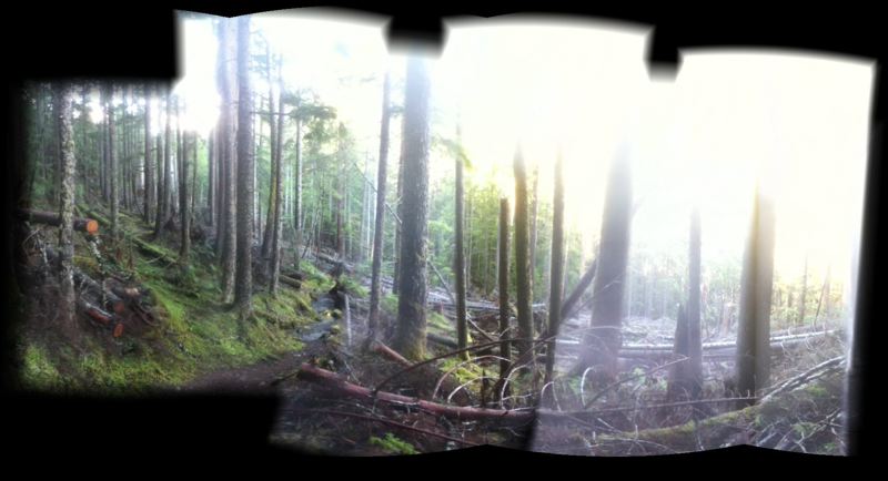 These aren't like the panoramas we've taken before. Those were of much higher quality and stitched together using Adobe Photoshop. The iPod Touch has a cell phone camera, and not a very good one. It doesn't work very well in low light situations, such as one finds in a rain forest. The Panorama 360 program builds the picture while one watches it, so one can see the panorama grow and move the camera to capture more of the scene. The sensor in the camera isn't very good, and, let's face it, the human hand is no substitute for a proper tripod.
