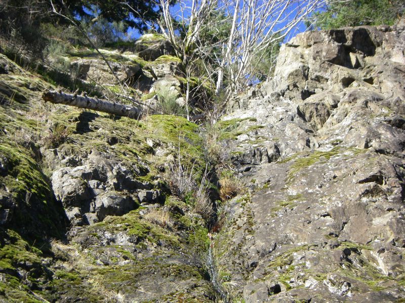 Our special bonus surprise waterfall is back, thanks to all the rain we've been having this winter. It flows down what we call the Cliffs of Neurosis. They're like the Cliffs of Insanity in the Princess Bride, but not quite so high. Usually, the area is quite dry, but during the rainy season there is often a bit of a flow. This year there wasn't as much of a stream as some winters, but it's nice to see we're having a properly wet winter.