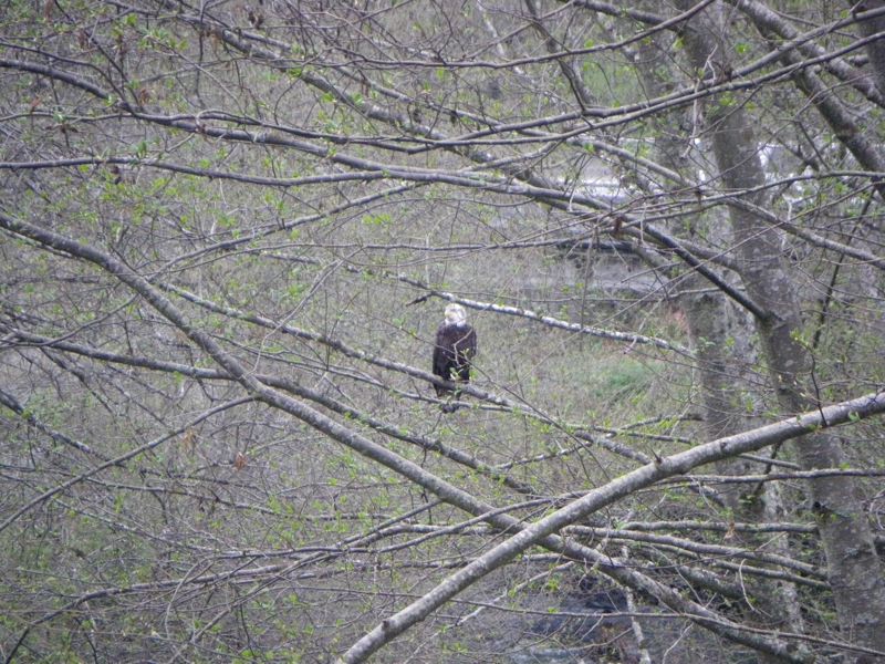 Can you see the bald eagle perched on a branch over Morse Creek?