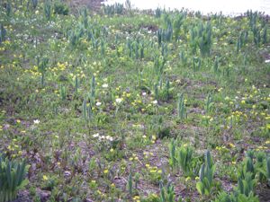 Among the other flowers, a glacier lily, a sign of recent melt.