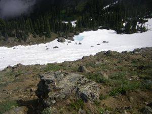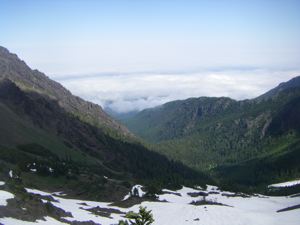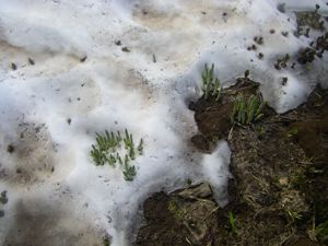 We recently made an attempt to climb Klahane Ridge via the Switchback Trail, but we didn't get very far, only 850' above the parking lot. We did get up into the hanging gardens, past the junction with the trail to the lodge. All told, it was a beautiful climb. There were some flowers, but the hanging gardens were lush and green, not yet in bloom. We turned around at the first patch of snow on the trail, poor spirited. We'll be back again, and we are hoping to go higher. Every season, the challenge begins anew.