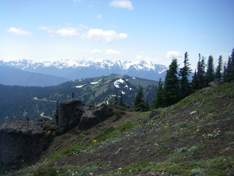 We took the side spur off the Hurricane Hill trial to check out the meadow where the corn lilies grow. They are most definitely growing. They are even spreading with corn lilies appearing in areas we had not seen them in before. The views, not surprisingly, were spectacular. The corn lilies have not yet bloomed, but lots of other flowers have.