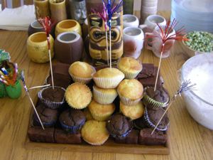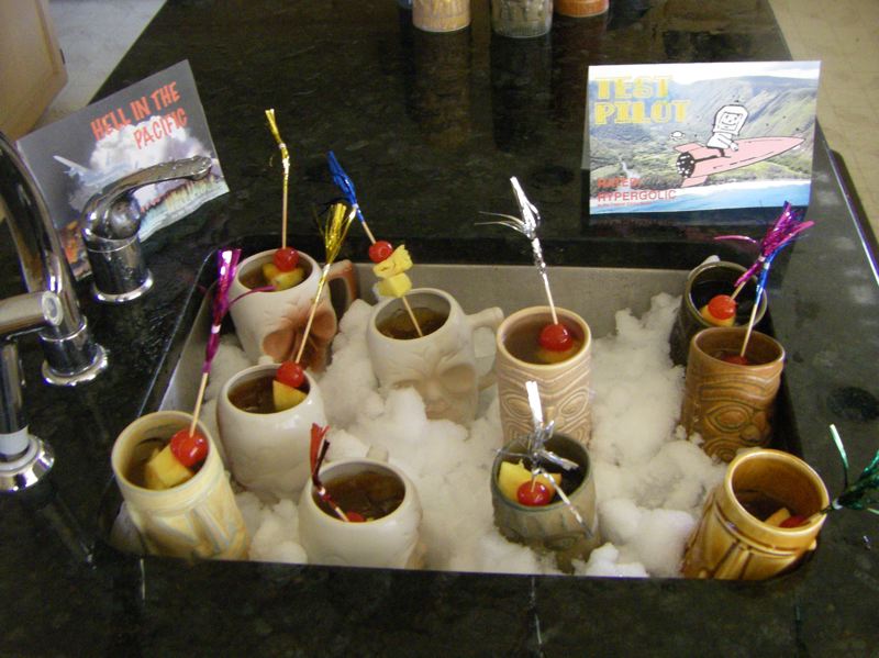 All the regulars were there for the 2011 Kaleberg Luau. The lau lau were front and center, flanked by our heavy on the turmeric Balinese chicken, and a plate load of ahi tuna sushi. The punch bowl was an ocean of Mai Tais, but the real favorites were the Test Pilots and Hells in the Pacific. There is nothing quite like a Hell in the Pacific served in a skull mug. We also had our traditional cupcake heiau, which is an important component of any true luau. One big favorite was the watermelon salad. It was a side dish, but so many people asked for the recipe, we'll include it in another post.