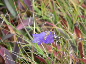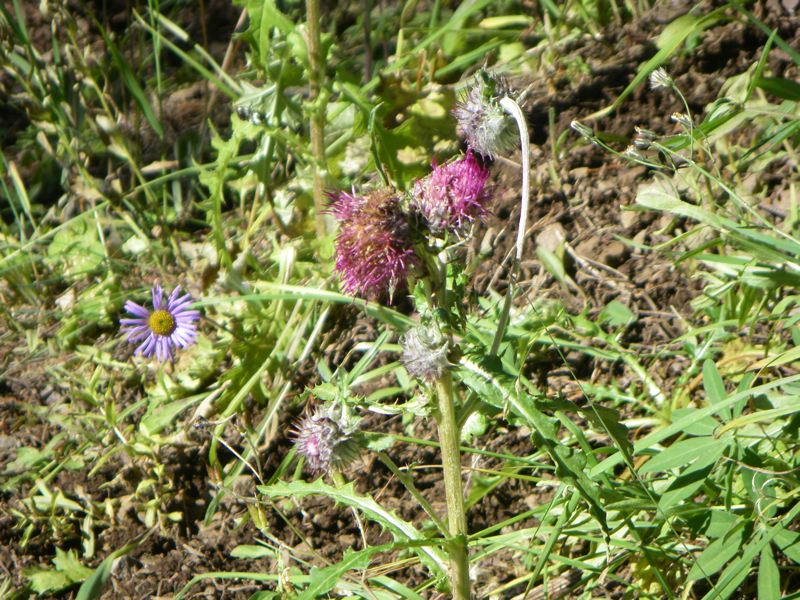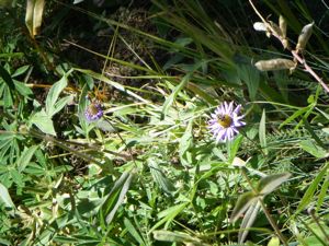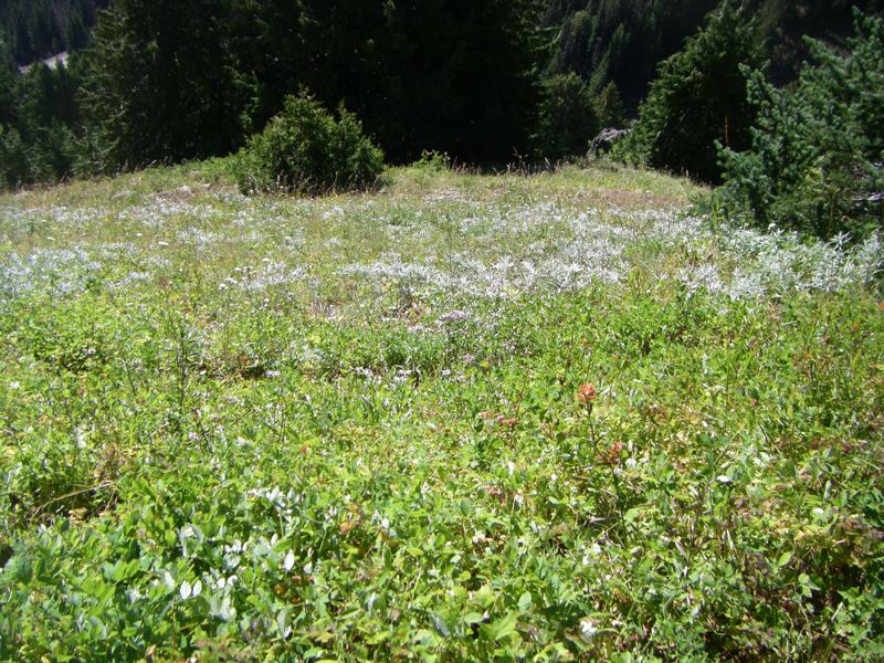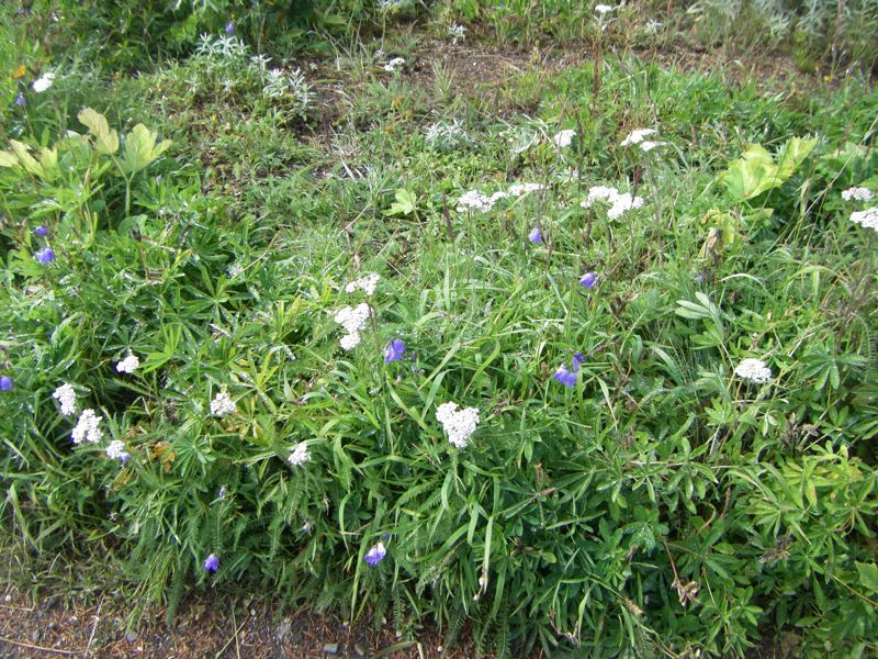 We were a bit disappointed with this year's crop of corn lilies. We took the side spur and found a number of spikes, now dried and brown, but the taller corn lilies were fallen with no signs of their blooms. Even the mouse on a stick seemed a bit dispirited, but there were a few flowers left including yarrows and harebells.