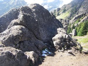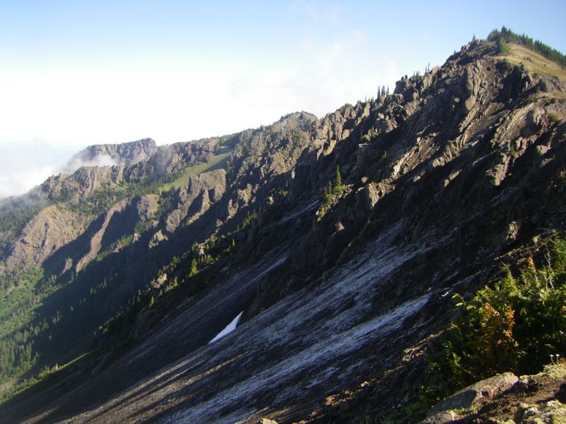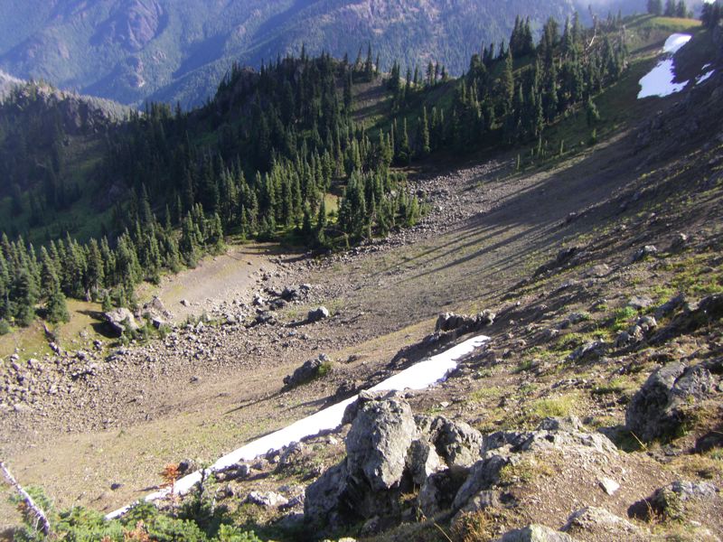 This has been a short season for the high country. Already, there is snow on Klahane Ridge. Granted, it was just a sprinkling and seems to have melted in all but the shadiest areas, but it was snow none the less. The recent rains and snow made climbing much easier. The trail was turning into soft sand as it does late in the season, but this time the footing was good.