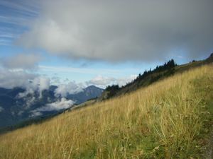 This year the high country grasses stayed green until almost the last minute. Usually they turn to gold by late August, but this year was much moister, and the snows melted much later. Now, they are turning golden with a vengeance.