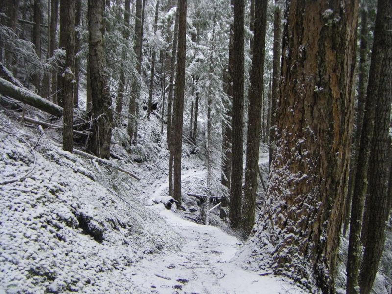 It's kind of magical up along the Lake Angeles Trail lately. The snow's not very deep, but it really adds something seasonal to the scenery.