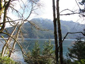 We took a short walk along the north shore of Lake Crescent, and the big news was the first skunk cabbage of the season. We also saw a couple of downed trees, which isn't surprising given some of the recent winds.
