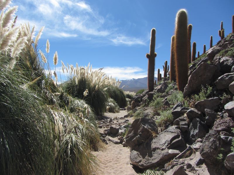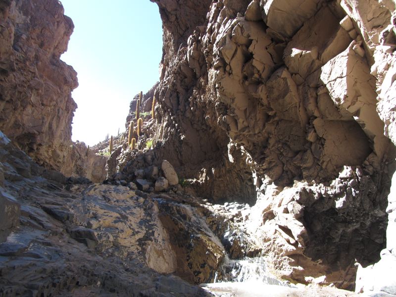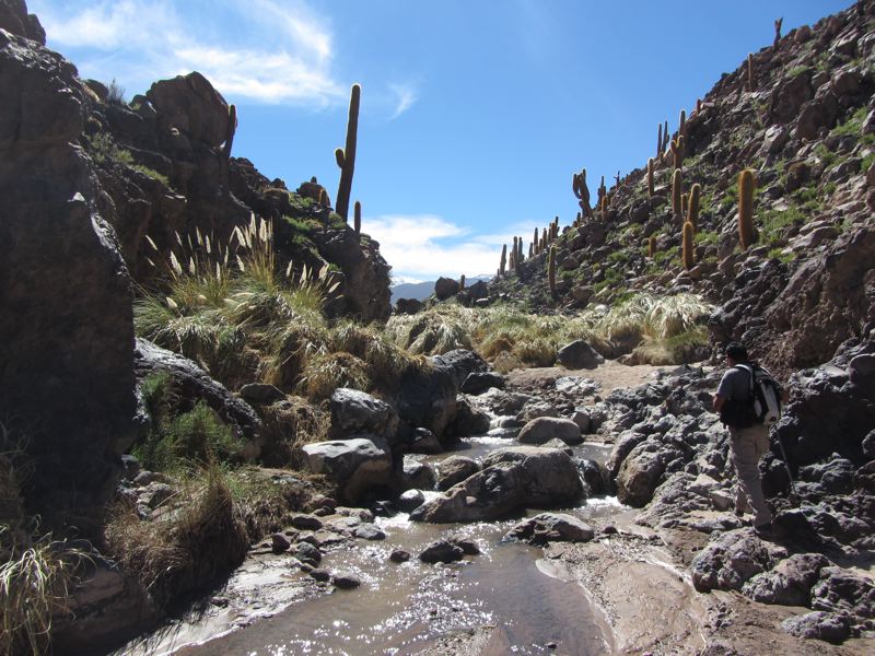 Much of the Atacama Desert is extremely dry. Even cacti need moisture, and big cacti need even more. While our trailhead might have looked dry, there were all sorts of large cactus telling us that water was nearby, especially in the canyon itself.