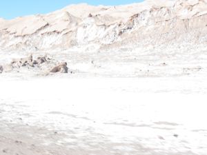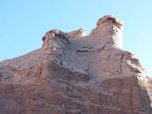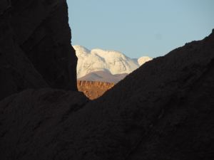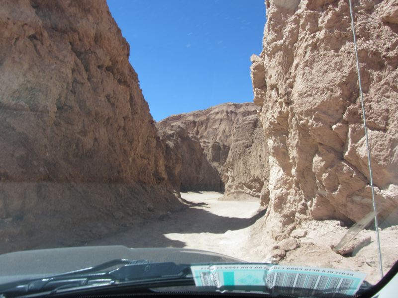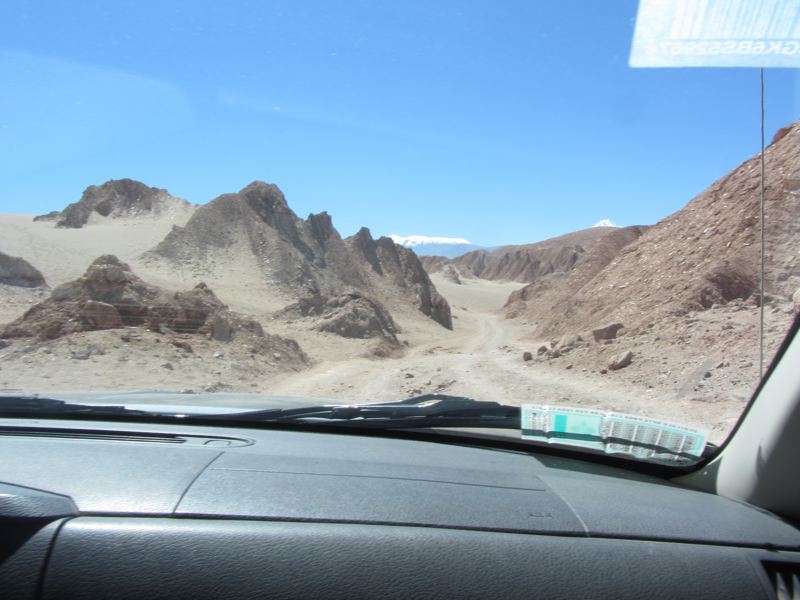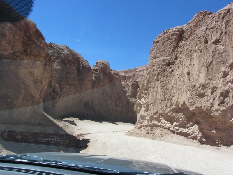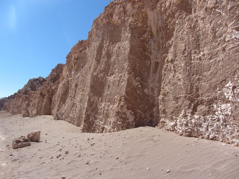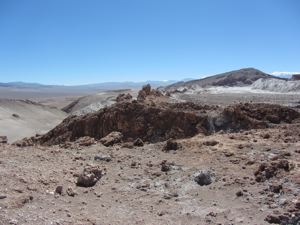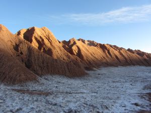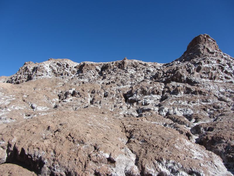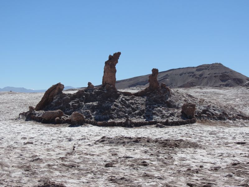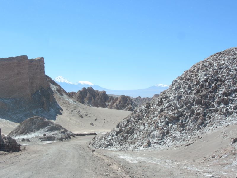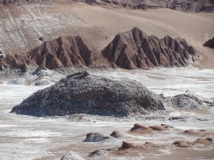 The Valley of the Moon has other surprises, including strange pillar like formations carved from small hills by the wind, heat, cold and rain. The loop road was closed by the recent rains. It was covered with salt, not snow, and under the salt, water was on the move.
