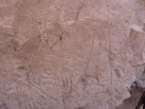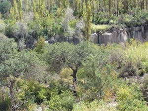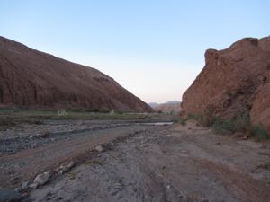 We would have lingered, but the light was failing. We left the plateau by an alternate route, clambering down rocks and emerging by the river, the same river we had followed on our way to the trailhead. Then came our race with darkness as we followed the broad flood plain of the river downstream to our guide's truck.