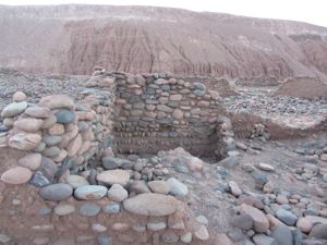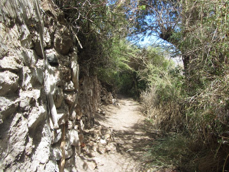 In the last installment we mentioned a surprise. It was above us, built into the canyon wall, an old Incan ruin. This is about as far south as they conquered, and this was an old fortification dominating the canyon path. A bit further on, there were caves in the wall. Our guide led us on a scramble up the side of the canyon and into the ruins of an Incan outpost. All that were left were stone walls, but there were at least a dozen buildings still partly standing.
