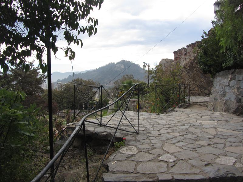 Since our flight home left Santiago at two o'clock in the morning, we planned our final day carefully. We started with a walk around Santiago on Easter Sunday. We expected everything to be closed, but it turns out that the Cerro Santa Lucia, the original fort built when the city was founded in the 16th century, was open. It was a trip backwards in time with the formal garden near street level and staircases leading upwards to the fountain of Neptune and then higher to a terrace and finally up to an old church and the old look out tower. The view of the city was quite impressive.