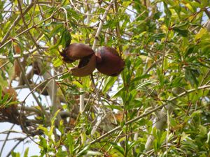 These are a type of pomegranate. It's autumn in Chile, so these are ripe.