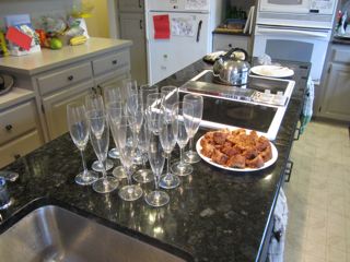 Fruitcake and champagne glasses