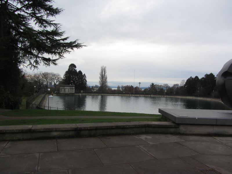 A winter scene in Seattle with the Space Needle in the distance