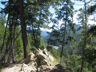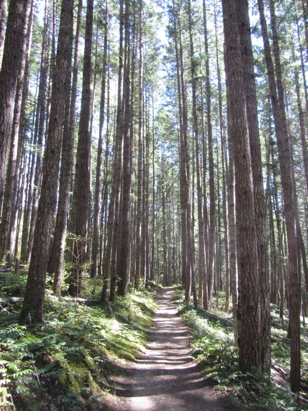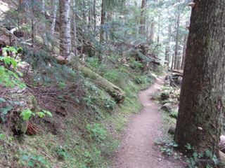 One thing we particularly noticed, as we took this hike on a very sunny day, was that while most of the trail is purely of the Pacific northwest, there are dry stretches where one turns a bend or comes out of the forest, and it feels as if one were hiking in California. The vegetation changes, and the smell of the trail changes. If we didn't know the trail and where we were, we'd imagine we were hundreds of miles south. Then, the trail turns or reenters the forest, and we are back in the Pacific northwest.