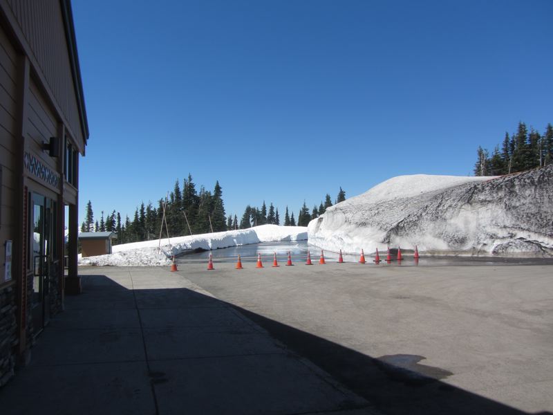 The Kaleberg Report - The snow is melting rapidly. We were quite surprised. The phlox is in bloom a bit below the Switchback trailhead, so the high country is opening for the season. The biggest surprise was the state of the road to Hurricane Hill. It was blocked off by a barricade of orange highway cones, but instead of the usual high ramparts ending in a wall of snow, the road seems to have been plowed, at least as far as we could see. It may even be open now as you read this.