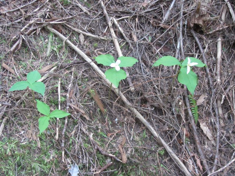 We've been hiking the Lake Angeles Trail out of Heart of the Hills for over a decade now, and we have never seen so many trilliums in bloom. There were always a few, but each year there seem to be more and more of them. Even in places where we have never seen them before, such as along the drier stretch above the crossing bridge, there seem to be a lot of them. In places, like the Trillium Vale, where there were always a fair number, there seem to be more of them. Are they new colonizers? Has some condiiton changed? They like water. Could the area be, somehow, getting wetter?