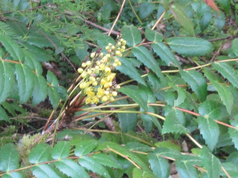 The trilliums aren't the only things blooming. The Oregon grape is coming out as well.