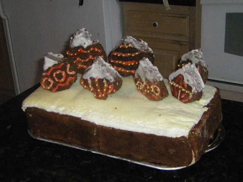 You saw and ate the domes in the last post, now enjoy a few pictures of the spread. (For some recipes, see our Russian Easter page.)