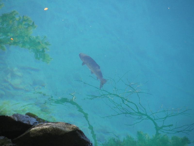 A fish seen through the clear water of the lake