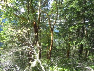 We hadn't taken this trail in some time, partly because it is the most daunting. It is the steepest climb that we have ever taken in the area, steeper than the Lake Angeles Trail and steeper than the Switchback Trail to Klahane Ridge. We did get a peek or two at the lake and we greatly enjoyed the rainforest trees, twisting, turning and encased in moss, The madronas, as always, were mysterious.