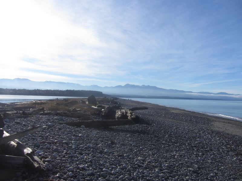 The autumn tides at Dungeness Spit are terrible for hikers. The day time low tides are often as high as the high tides which leaves just a narrow strip of rocky, gritty beach for walking. Winter, however, is different. Already, we are getting real low tides during daylight hours, and unlike some winters where most of the sand gets washed out to sea, this year there is a fair bit of sand which makes for good footing. We haven't made it all the way out to the lighthouse yet, but anything is possible in the new year.