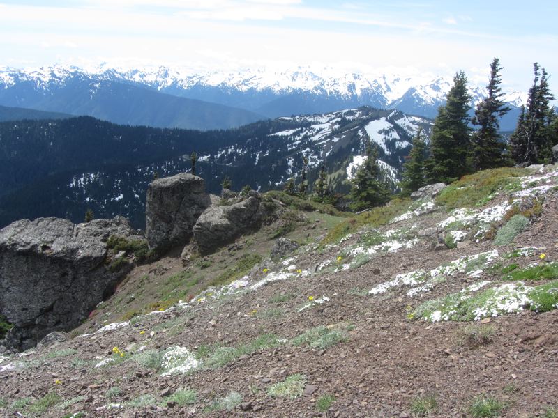 We still aren't sure how we did it, but we managed to climb up the Switchback Trail and get all the way up to Klahane Ridge. We were sure that this was as early in the season we had ever managed the climb, but we actually did make it to the ridge on May 29th back in 2005, so it has been a while.