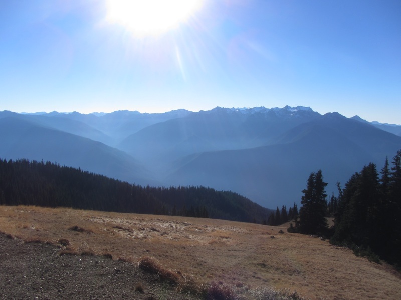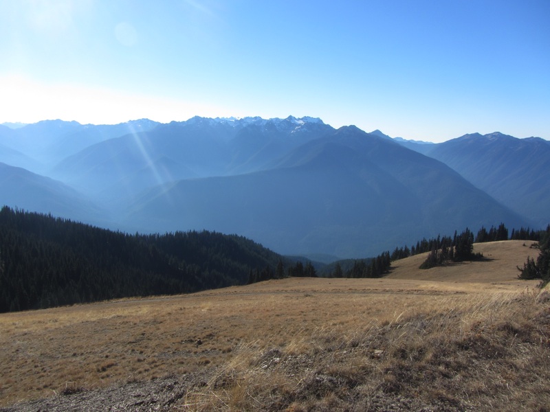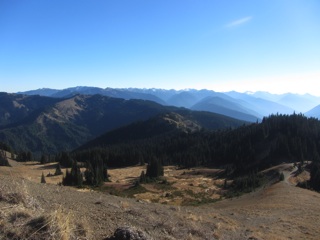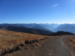 Hurricane Ridge Road is now being closed during the week from Monday through Thursday. On Fridays and weekends the road is open, and, right now at least, the road to Hurricane Hill is open as well. It was a bright sunny day, and there were lots of people climbing up to Hurricane Hill. We were a bit out of shape for the mountains- the trailhead is nearly a mile up - and it was cold. Despite this, we made good time. The colors are muted now, but the scenery is still spectacular.