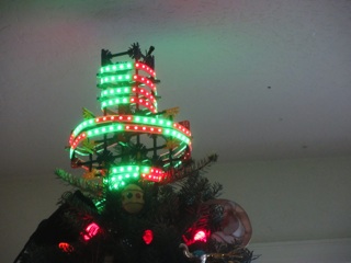 That's our new Christmas tree topper. It's wifi compatible and based on an Arduino Yun.