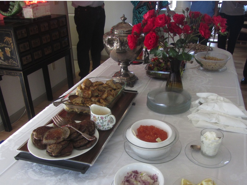We had such a great time at our Russian Easter party - yes, we know it's awfully late - that we forgot to take pictures. What with the blini, shashlik, pelmeni and home made sausage, we had a serious Russian feast. There was butter and more butter, and then came the Defense of Moscow from the Monster Napoleon. Moscow was played by a giant baked Alaska with brownie domes. Napoleon never made it to Moscow in our version. He was stopped in his tracks by the scorched earth policy, fueled - ironically enough - by the fumes of French brandy.